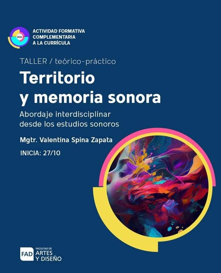 El taller Territorio y memoria sonora. Abordaje interdisciplinar desde los estudios sonoros” contribuye a la inserción de los estudios sonoros como disciplina en la FAD, UNCuyo. Esta propuesta se alinea con el taller “Paisaje sonoro desde un enfoque interdisciplinar”, https://fad.uncuyo.edu.ar/paisajes-sonoros realizado como una actividad de Complemento Curricular de la FAD en 2021. En aquella ocasión la experiencia tuvo gran recibimiento de parte de las/los talleristas, a partir de la cual se elaboró “MENDOZA SONORA. Primer compilado