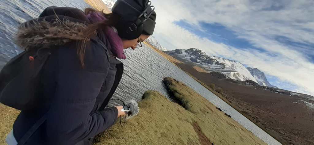 Durante los días que duró la experiencia, registré discursos, anécdotas, relatos y comentarios que ponían en juego la escucha, la memoria sonora y la relación entre los sentidos y el territorio. Las voces que integran el documental pertenecen a una mujer de la comunidad mapuche, un arqueólogo, una astrónoma, un vaqueano, entre otras personas que compartieron sus saberes y miradas durante el encuentro.